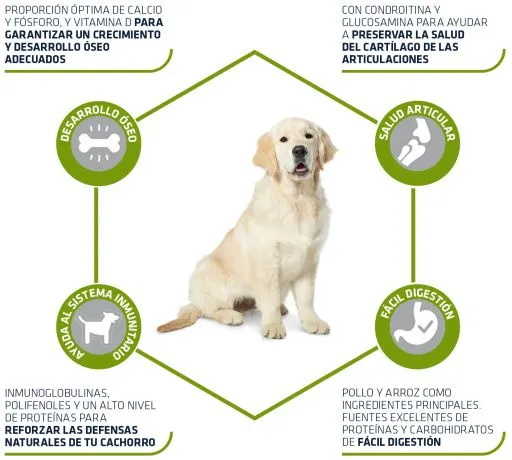 -Acidi grassi Ω-3: Favoriscono il corretto sviluppo del sistema nervoso centrale e la vista nei cuccioli, durante la gestazione e dopo la nascita.