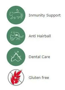 – naturale effetto di fibre « . antihairball » per favorire l’eliminazione dei boli di pelo ingeriti quotidianamente governare