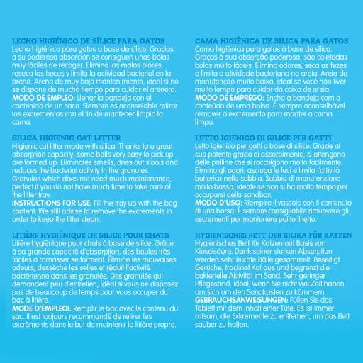 Lettiera per gatti: Arquicrystal assorbe gli odori ed elimina i batteri, non è tossica ed è completamente biodegradabile.