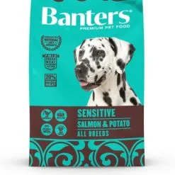 Banters Adult Sensitive è un alimento completo ed equilibrato per cani adulti di qualsiasi razza; E soprattutto per quelli con stomaco sensibile o con propensione a soffrire disturbi digestivi. L’alta digeribilità degli ingredienti consente il massimo assorbimento dei nutrienti, facilitando la digestione. Ricco di acidi grassi, zinco e vitamina A, che aiutano a mantenere la pelle e i capelli sani e luminosi. Salmone fresco (20%). Riso. Mais. Proteina salmone disidratata. Patata (14%). Olio di pollo. Salmone idrolizzato. Polpa di barbabietola. Lieviti. Sostanze minerali Cicoria (FOS 0.05%). Mananooligosaccaridi (Mos 0,05%). Yucca Schidigera.