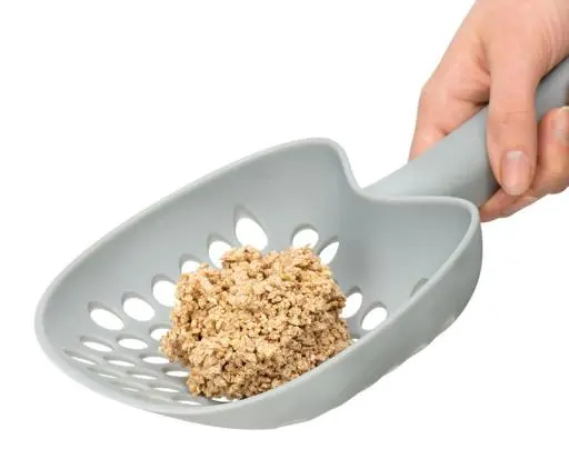 Si consiglia di utilizzare una paletta larga con fori grandi per facilitare l’estrazione della lettiera a grumi e il setacciamento del resto.