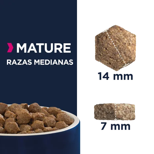 Il cibo per cani maturi e anziani di taglia media EUKANUBA Mature & Senior contiene una tecnologia 3D DentaDefense che pulisce la dentatura ad ogni morso, riduce la formazione di tartaro fino all’80% e permette al tuo cane di mantenere denti forti.