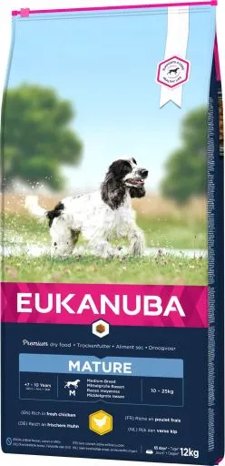 Il tuo cane anziano è stato al tuo fianco in mille avventure. Dagli il massimo con un’alimentazione di qualità superiore in grado di soddisfare tutte le sue necessità. Il cibo secco per cani maturi e anziani di taglia media EUKANUBA Mature & Senior è formulato con una miscela di carboidrati scientificamente provata, in grado di fornire al tuo cane energia sostenibile, mantenendolo sano e attivo per affrontare qualsiasi avventura.