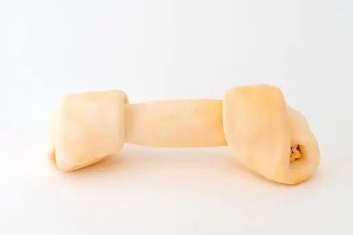 Cane mastica nodo sagomato, realizzato con la pelle naturale altamente digeribile. sapore di mango.