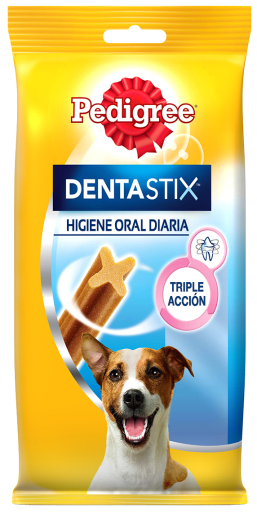 Pedigree® Daily DentaStix® sono barrette masticabili in un’originale forma a X. È scientificamente provato che riduce l’accumulo di tartaro fino all’80% se masticato quotidianamente. Sono progettati per essere masticati abbastanza a lungo per avere effetto, dato che la loro consistenza leggermente abrasiva e gli ingredienti attivi aiutano a ridurre la placca e l’accumulo di tartaro.