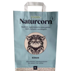 Wuapu Naturcorn Kitten è un substrato innovativo per gattini che sostituisce la lettiera convenzionale, è totalmente naturale e 100% composto da mais schiacciato sotto forma di mini pellet con un grande potere di assorbimento, che lo rende biodegradabile, senza polvere ed emana un piacevole aroma. Wuapu Naturcorn si aggrega a contatto con l’urina e le feci del gatto e può essere gettato nel water perché si dissolve rapidamente. Essendo biodegradabile e organico, non è un problema se il gattino lo ingerisce. Contenitore da 6 L con manico Prodotto brevettato.